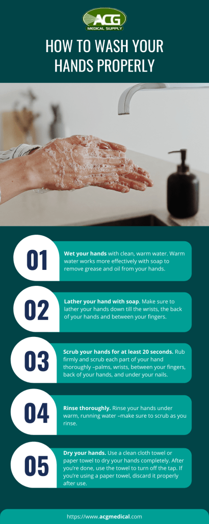 Rinse thoroughly. Rinse your hands under warm, running water –make sure to scrub as you rinse.