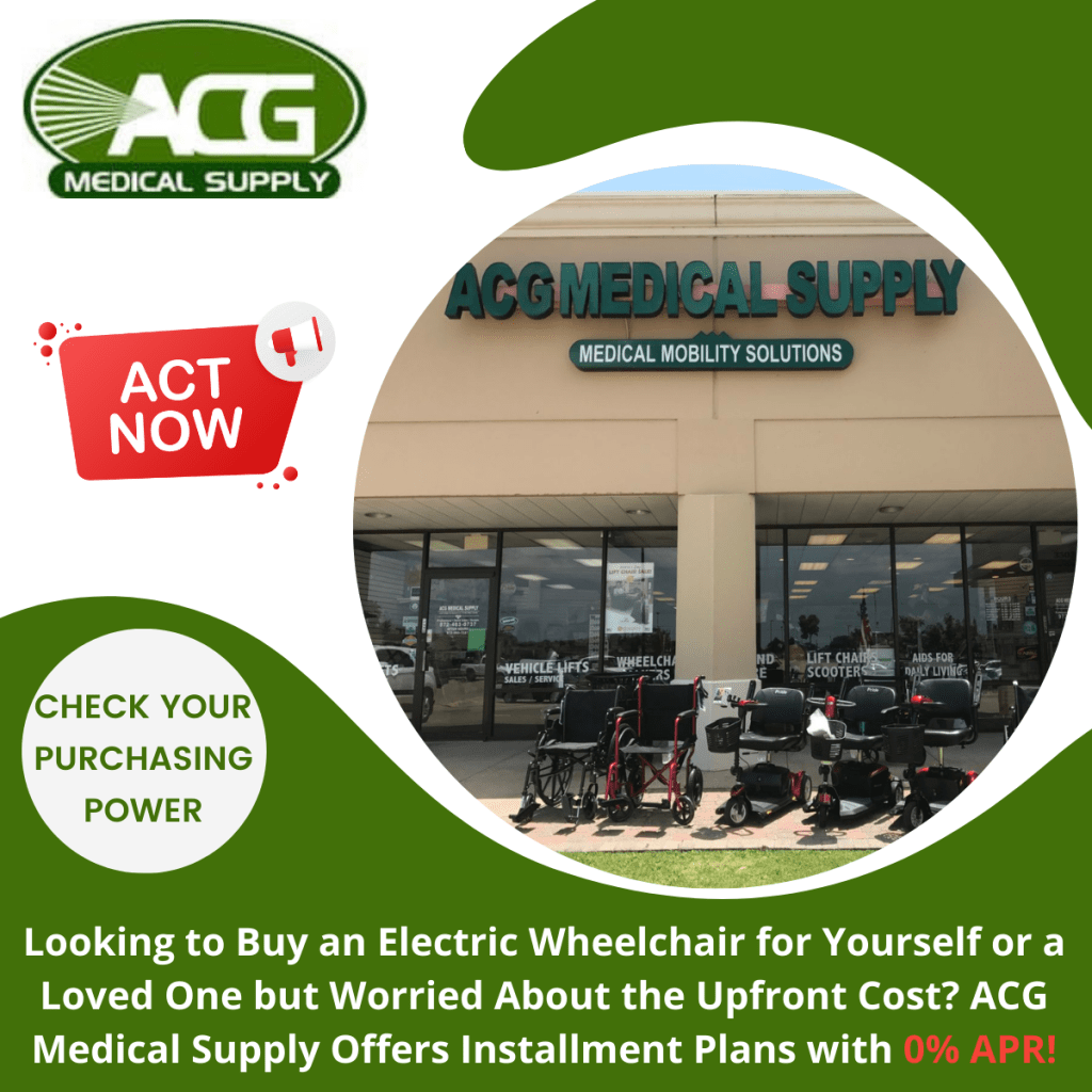 Struggling to cover the cost of essential medical supply for yourself or a loved one? ACG Medical Supply understands your financial challenges. That’s why we offer convenient installment plans with 0% APR through Affirm. Whether you’re seeking mobility aids, home healthcare supplies, or other medical necessities, we’ve got you covered. Best of all, checking your eligibility won’t impact your credit score. Discover your purchasing power and regain independence without breaking the bank. Don’t let financial constraints hinder your well-being. Visit our website or Showrooms today to explore our range of medical products and start your journey to improved health and mobility.